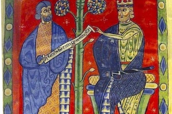 Bild: Plinius übergibt seinem Kaiser seine Naturalis historia. Biblioteca Medicea Laurenziana. d…