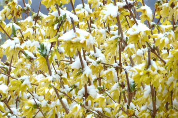 April 2021 Leise rieselt der Schnee. Forsythien tut das sehr weh. Der Zeisig frohlockt her vom Wald: Fre…