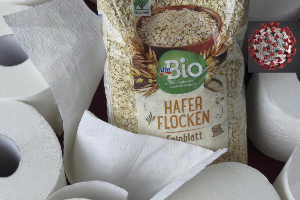 Klopapier und Haferflocken Klopapier und Haferflocken, die zu Hauf zum Kaufe locken, sind…